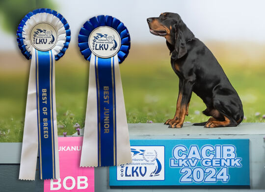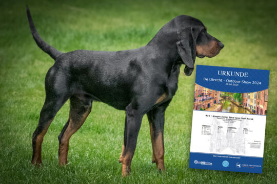 Hier erhielt er die Bewertung „vorzüglich 1“, FCI-CACIB-J und er wurde „bester Junghund“ und „Bester der Rasse!“.